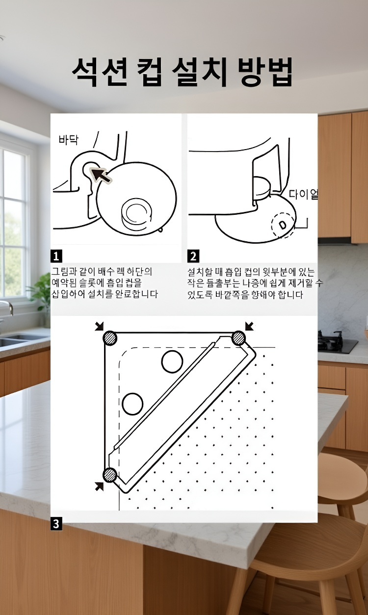 과일, 야채를 물빼는 삼각 흡착 선반 활용 예시